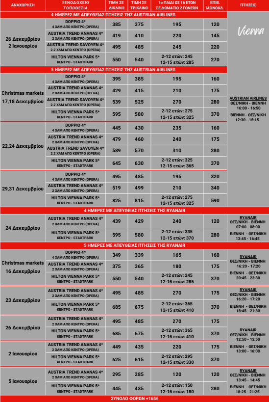 - Αεροπορικά εισιτήρια με απευθείας πτήσεις προς/από Βιέννη με Austrian Airlines ή Ryanair