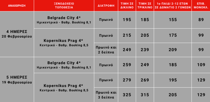 - Η διαμονή μας γίνεται στα ξενοδοχεία Belgrade City 4★ και Kopernikus Prag 4★