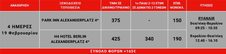 - Δυνατότητα διαμονής σε κεντρικά ξενοδοχεία 4*, στην πιο δημοφιλή περιοχή της πόλης, την Alexanderplatz.
