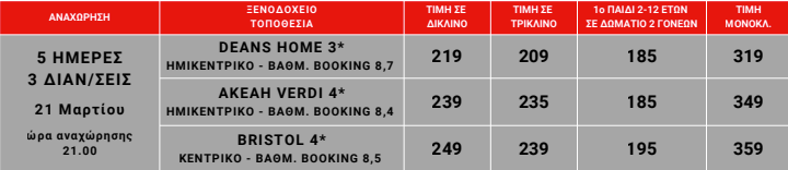 • Διαμονή σε ξενοδοχεία 3* και 4* είτε κοντά είτε στο κέντρο της πόλης.