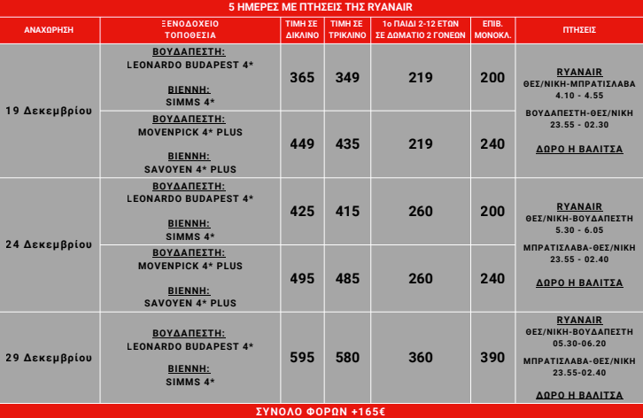 - Στην αναχώρηση 19/12 το πρόγραμμα πραγματοποιείται αντίστροφα χωρίς καμία παράλειψη.