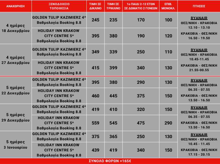 σας. Ιδίως στον χώρο του Άουσβιτς οι διαθεσιμότητες για τις γιορτές εξαντλούνται γρήγορα!