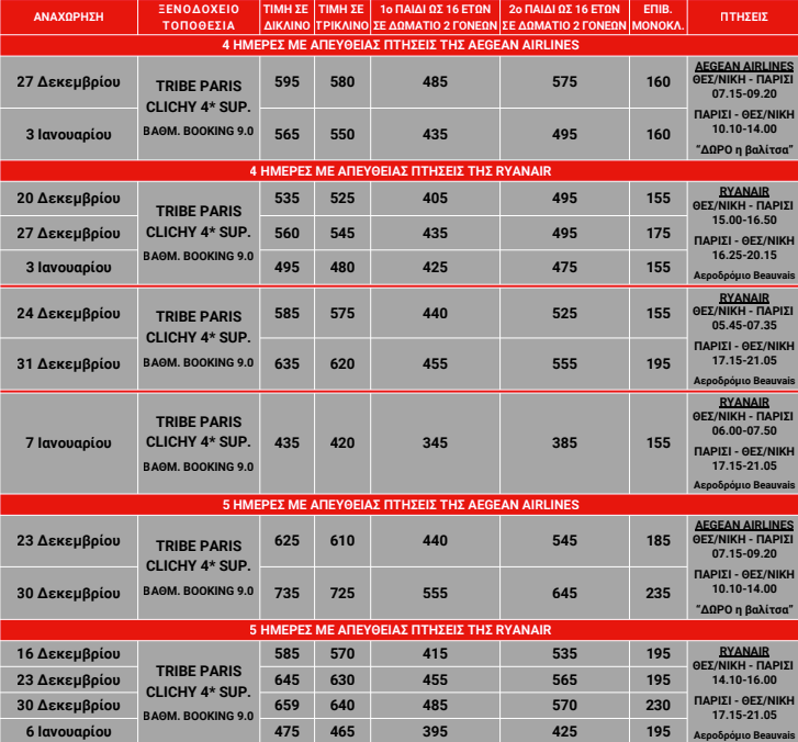- Εγγυημένες απευθείας πτήσεις με Aegean Airlines, Transavia & Ryanair, εταιρίες φερέγγυες που εκτελούν όλο τον χρόνο προγραμματισμένες πτήσεις προς το Παρίσι.