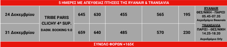 **Εάν επιθυμείτε επιπλέον αποσκευή 20kg ρωτήστε μας για την επιπλέον επιβάρυνση - Διαμονή για 3 ή 4 διαν/σεις στο ξενοδοχείο TRIBE PARIS CLICHY 4* superior με πρωινό καθημερινά στο ξενοδοχείο