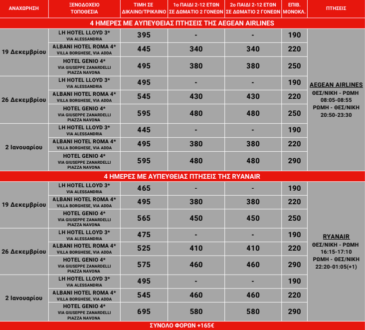 - Νέο ανανεωμένο πρόγραμμα με διαμονή σε κεντρικά ξενοδοχεία της Ρώμης